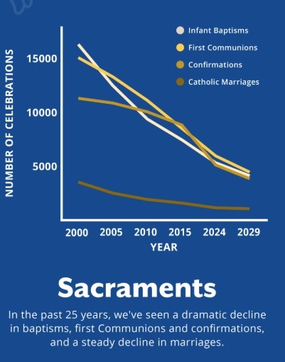 The Archdiocese of Detroit, under Archbishop Edward Weisenburger, enters a two-year restructuring period amid a "dramatic decline" in the number of priests and participation in parish life. Weisenburger describes the restructuring as an "intentional renewal ...Strengthening the Church for the Next Generation" In June 2025, Weisenburger eliminated all Traditional Latin Masses except one parish TLM and 3 non-parish TLMs.
